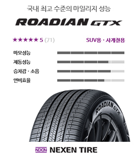 국내 최고 수준의 마일리지 성능, 고급형 타이어 렌탈 로디안 GTX